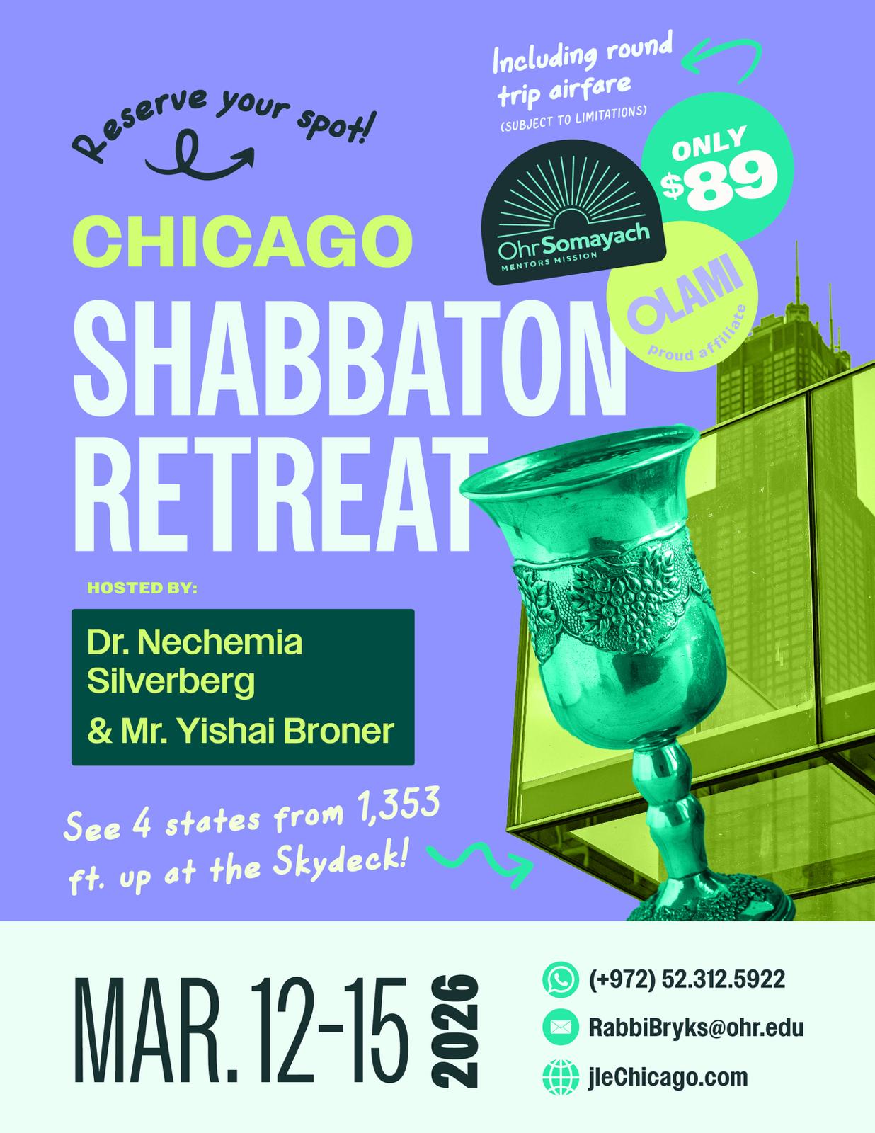 - EDUCATORS: A dream team of Olami and Ohr Somayach Rabbis and Motivational speakers